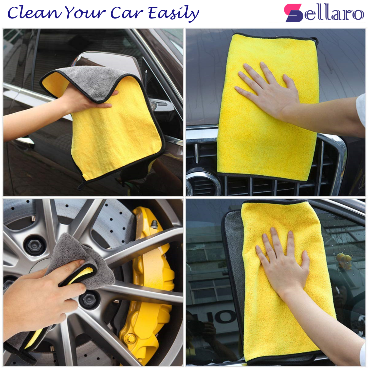 SELLARO Microfiber Cleaning Towel 800 GSM Thick Lint & Streak-Free Multipurpose Cloths, Double Sided, High Density, Extra Thick Plush Towel for Car Detailing, Cleaning, Washing and Polishing Size- 40×40 cm